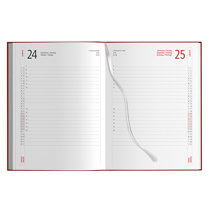 Agenda giornaliera maxi da 404 pagine è un accessorio professionale ideale per aziende che desiderano offrire un gadget promozionale funzionale, elegante e personalizzabile. Pensata per la gestione organizzata di impegni e appuntamenti, dispone di un interno strutturato con Sabato e Domenica separati.