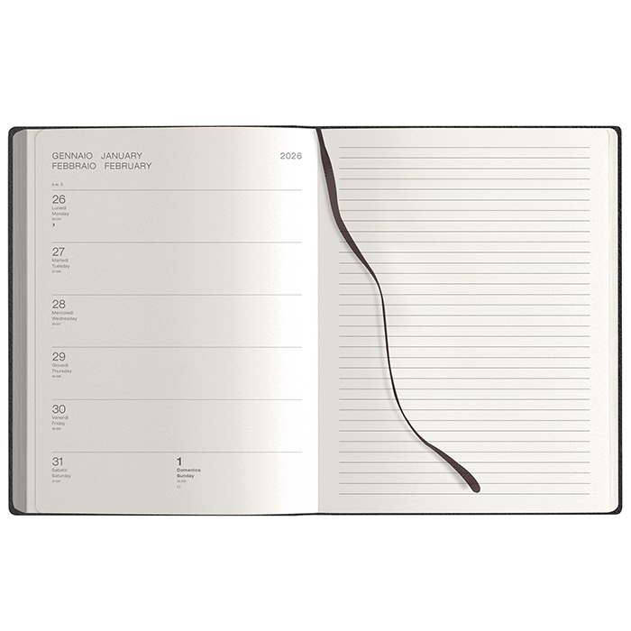 Il formato maxi garantisce maggiore spazio di scrittura, rendendola ideale per professionisti, manager e collaboratori che vogliono tenere tutto sotto controllo.
