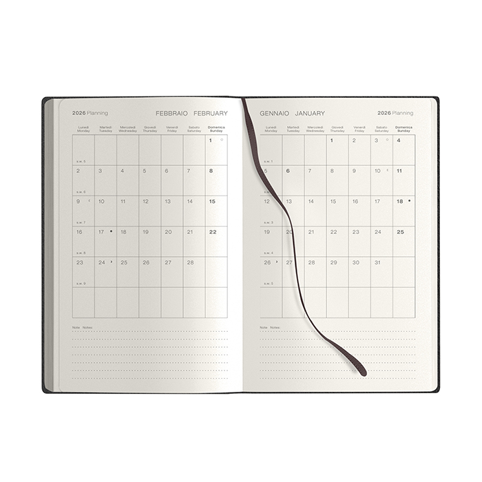 Stampata su carta avorio di qualità, questa agenda è progettata per supportare la pianificazione settimanale, mensile e dei viaggi, con spazi dedicati sia all'organizzazione che alla creatività.