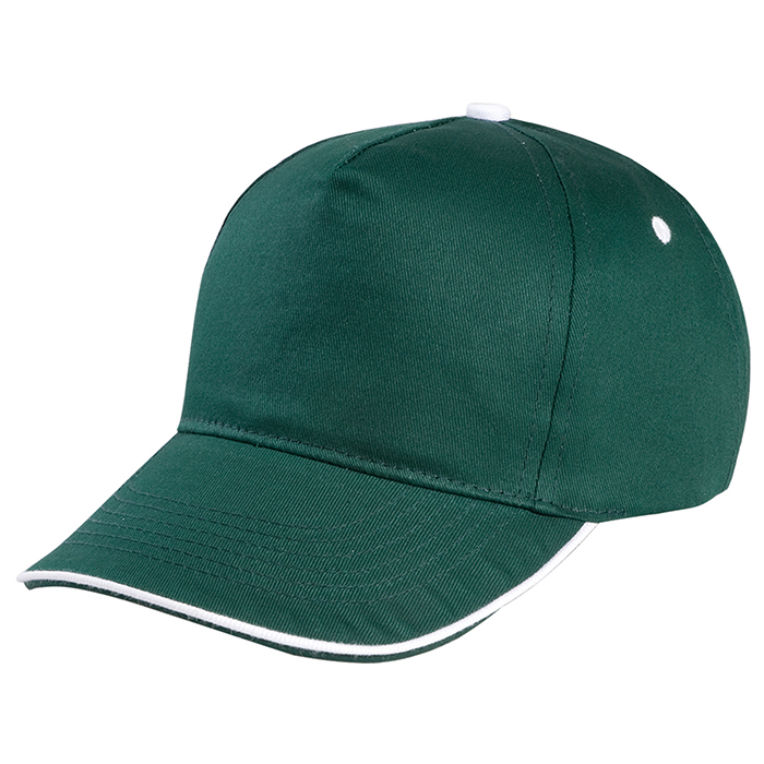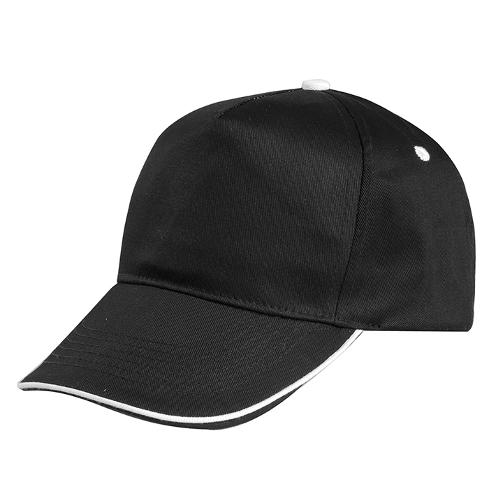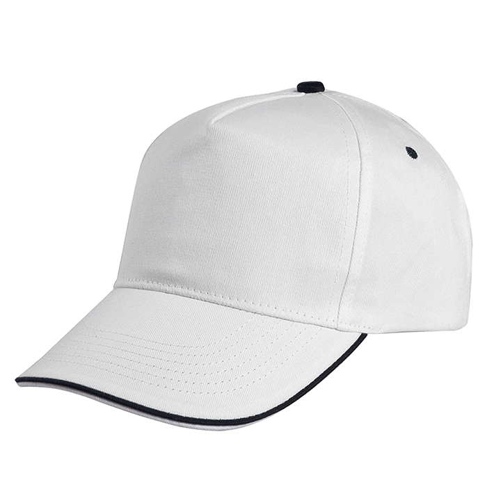 cappello 5 pannelli cotone twill 108/58 fascia tergisudore in colore abbinato occhielli ricamati...
