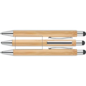 La penna a sfera in bamboo con meccanismo a scatto e stilo touch combina eleganza naturale e funzionalità moderna in un design raffinato e sostenibile. Realizzata in bamboo certificato FSC® 100%, garantisce l’utilizzo di materiali provenienti da fonti responsabili. Le finiture cromate lucide donano un tocco di classe, mentre la punta stilo integrata la rende perfetta anche per l’uso con smartphone e tablet. Dotata di inchiostro blu, offre una scrittura fluida e precisa, ideale per uso quotidiano o come gadget aziendale eco-friendly. Poiché il bamboo è un materiale naturale, ogni penna è un pezzo unico, con lievi variazioni di colore e dimensioni che ne esaltano l’autenticità.