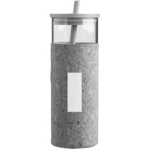 Bicchiere in vetro borosilicato, singola parete, custodia in sughero, tappo e cannuccia in bambù,...