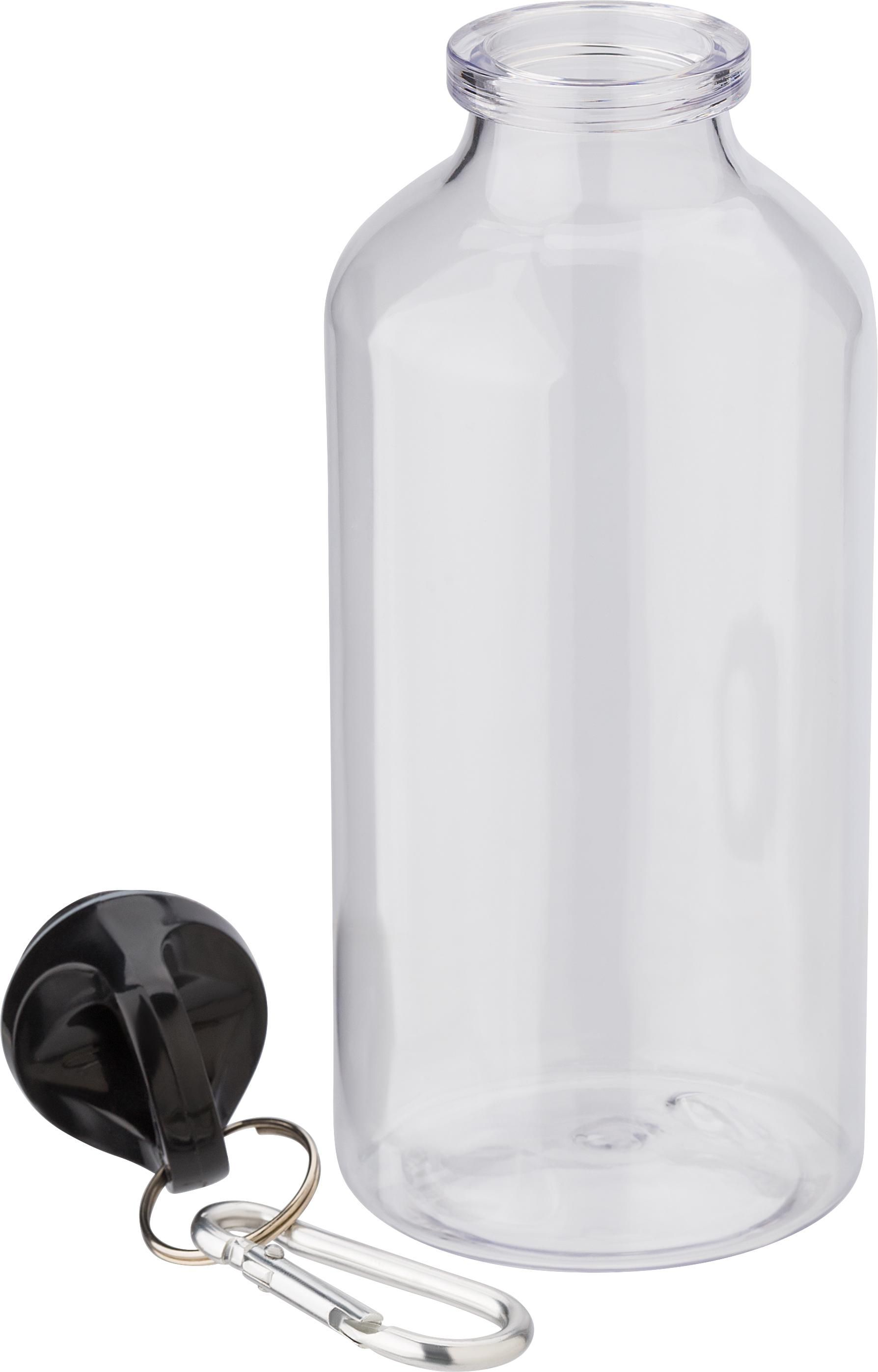 Borraccia rPET, tappo a vite, portachiavi e moschettone, capacità 400 ml
