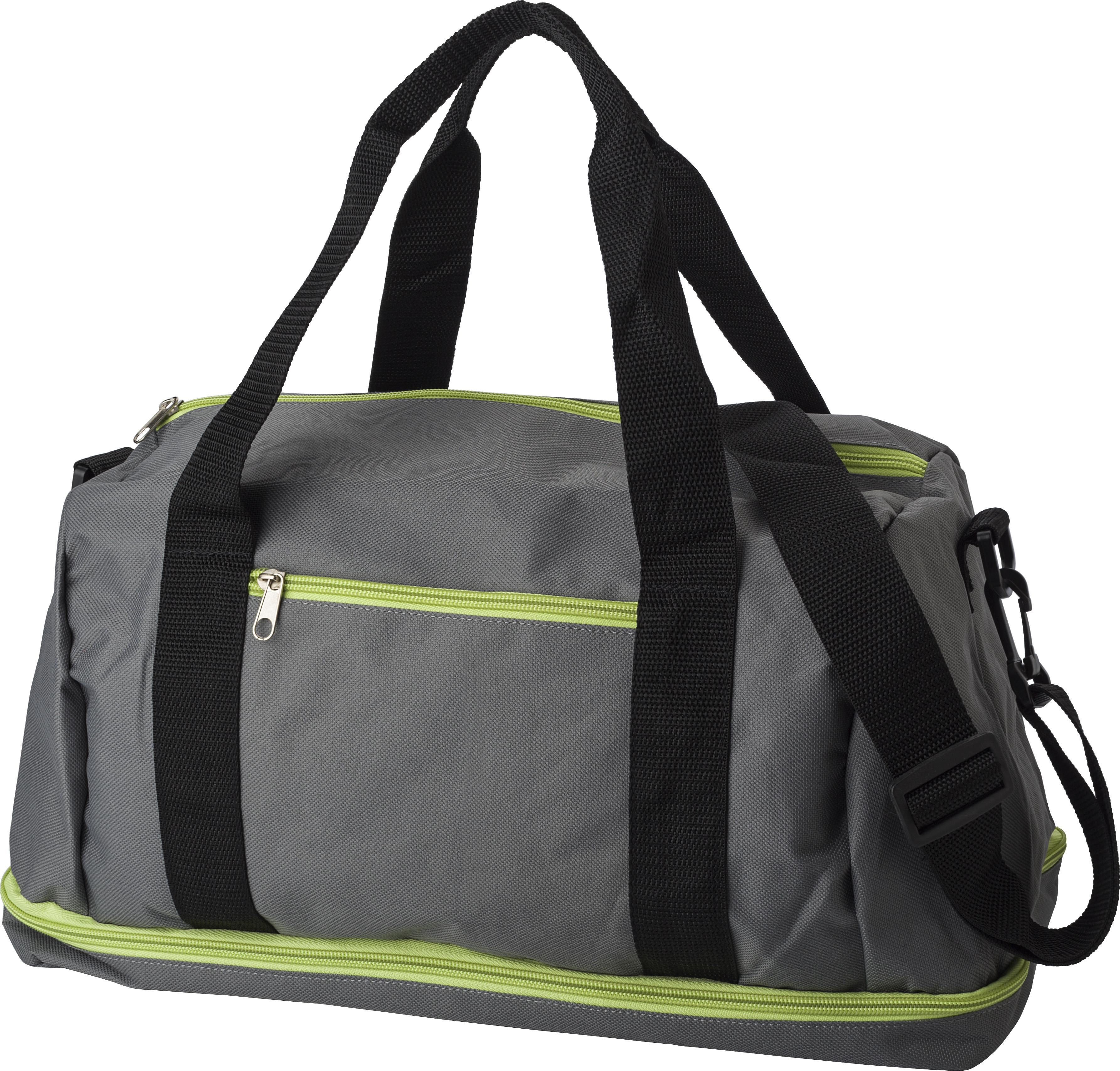 Borsa sportiva, vari scomparti di cui uno per le scarpe nella parte inferiore, chiusure a lampo...