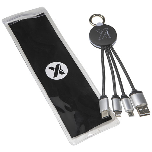 Cavo di ricarica con logo luminoso, finitura in gomma e dotato di tre connettori (tipo C,...