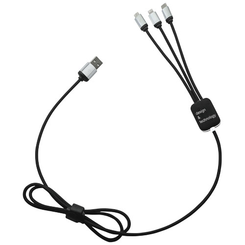 Cavo di ricarica con logo luminoso, finitura in gomma e dotato di tre connettori (tipo C,...