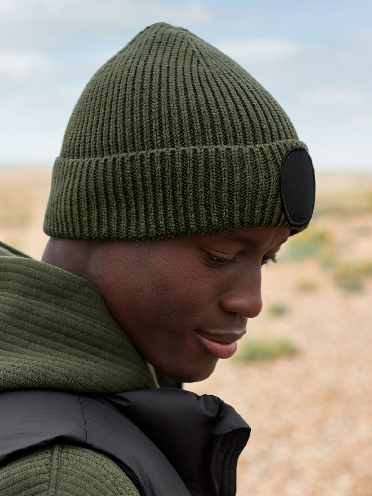 52% poliestere riciclato, 47% acrilico, 1% elastan. Berretto in maglia a costine, singolo strato,...