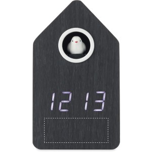 Orologio a cucù in MDF con sveglia integrata e display della temperatura. L'uccello esce e ha la...