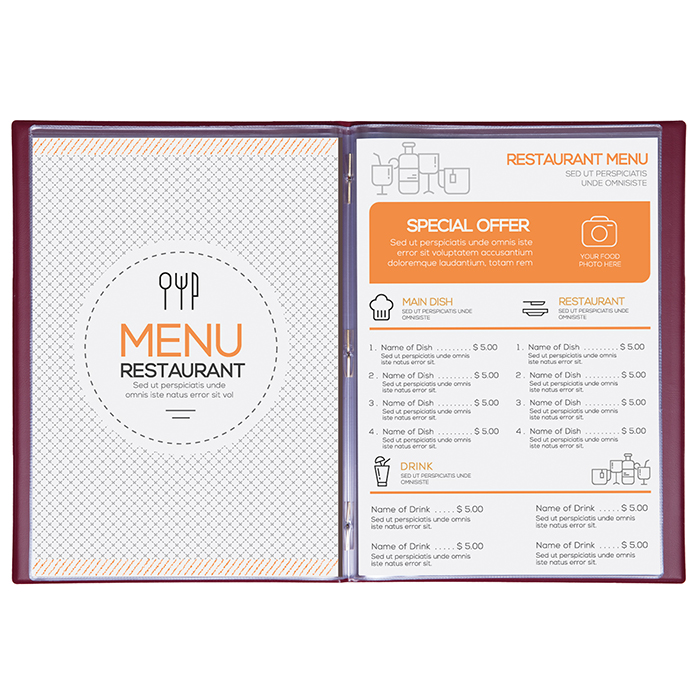 porta menù a due ante 8 tasche tecnica di stampa consigliata: serigrafica - UV