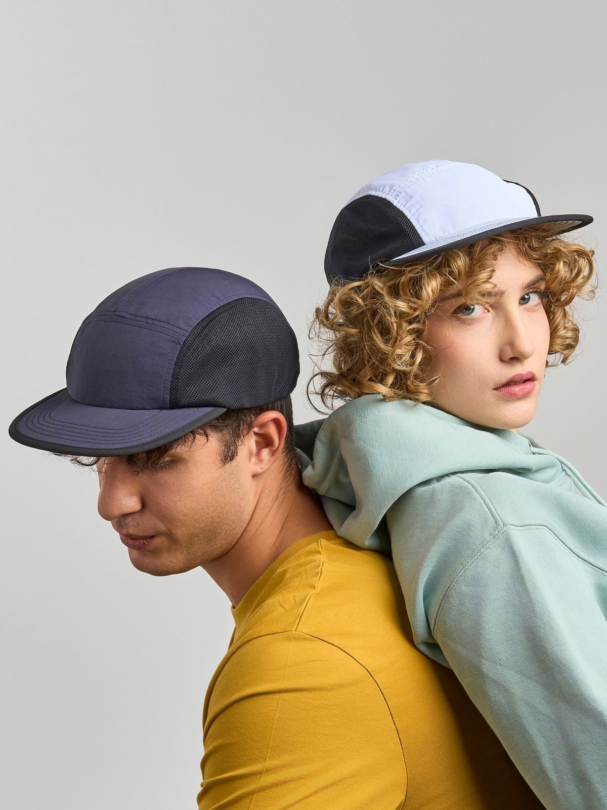 100% nylon ricilato - lati e retro: poliestere riciclato. Cappello a 5 pannelli, impermeabile,...