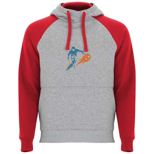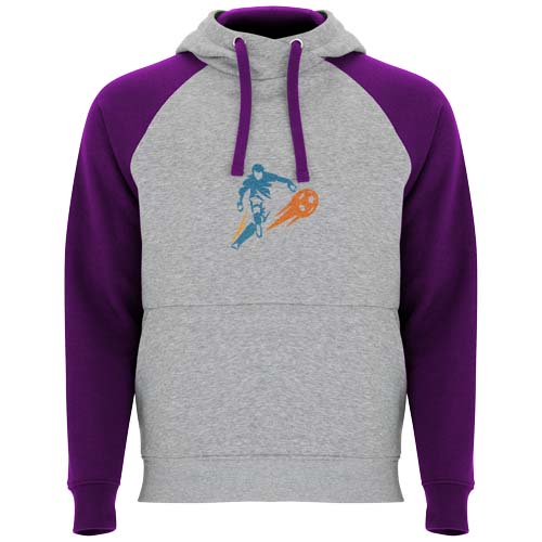 Felpa con cappuccio unisex bicolore. Cappuccio con collo incrociato e occhielli in metallo....