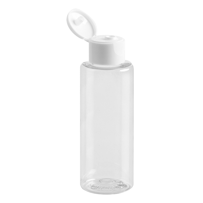 FLACONE IN PLASTICA TRASPARENTE 100ML TAPPO FLIP TOP BIANCO MADE IN ITALY BOX DA 100 PEZZI ISO2768