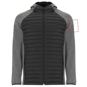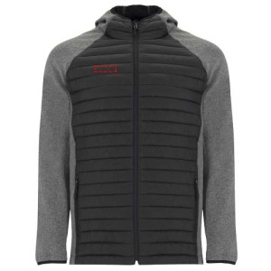 Giacca unisex in due tessuti. Cappuccio fisso regolabile. Maniche raglan. Maniche, inserti...