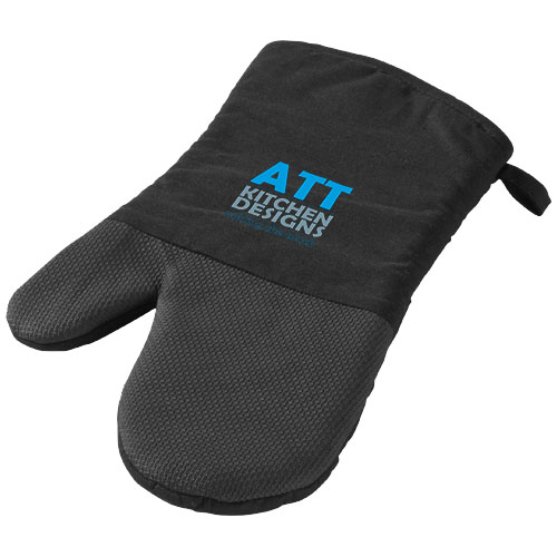 Guanto da forno destro con impugnatura in silicone e cuciture a diamante sull'altro lato....