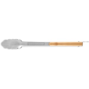 Pinze da barbecue in acciaio inox con impugnature in bamboo. Meccanismo di bloccaggio.
