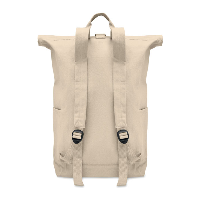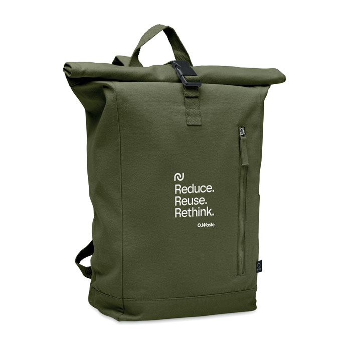 Lo zaino roll-top in cotone e poliestere riciclati è una scelta sostenibile e di tendenza,...