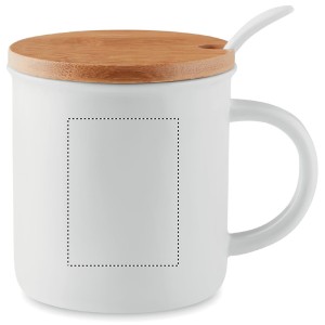 Tazza in porcelana con cucchiano. Coperchio in bamboo. Confezione singola. Capacità 380ml.