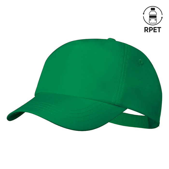 cappello 5 pannelli in RPET fascia tergisudore in colore abbinato occhielli ricamati frontalino...