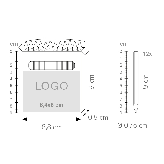 set 12 mini pastelli forniti già temperati custodia in cartoncino naturale tecnica di stampa...