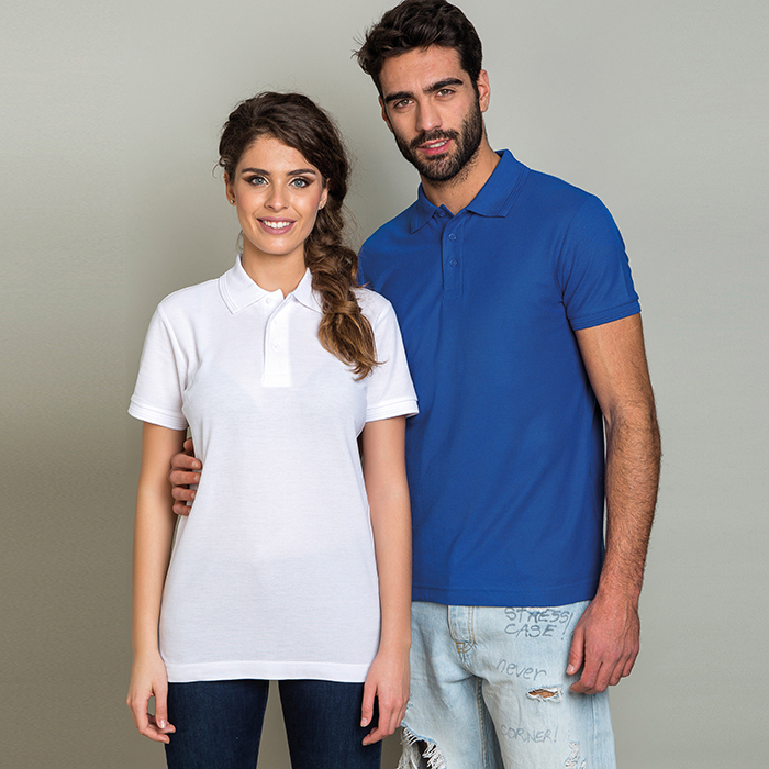 polo mezza manica in policotton 3 bottoni ribattitura doppio ago su collo, maniche e orlo nastro...
