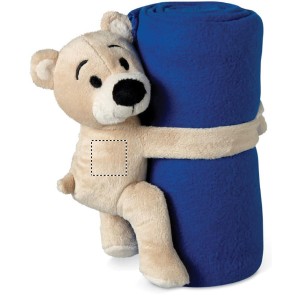 Coperta in pile con peluche a forma di orsetto. Chiusura in velcro.
