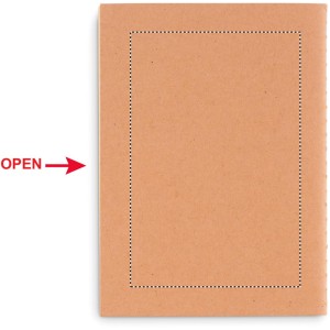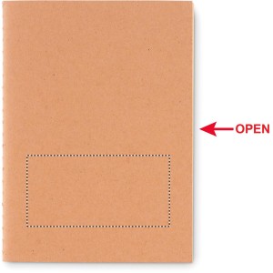 Notebook formato A6 con copertina in cartone riciclato, dal design essenziale e funzionale, ideale come gadget aziendale sostenibile e personalizzabile. Rilegato con cucitura, garantisce praticità e resistenza nell’uso quotidiano ed è perfetto per appunti veloci e promemoria. Contiene 80 pagine di carta riciclata neutra (40 fogli), offrendo una soluzione leggera e compatta per uffici, eventi e attività promozionali. La certificazione FSC® (FSC MIX, P7.1, FSC-C213206) assicura una gestione responsabile delle risorse forestali, rendendo questo notebook una scelta coerente per aziende attente all’ambiente e alla sostenibilità.