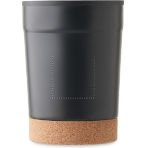 Materiali durevoli e dettaglio in sughero che valorizzano il logo.