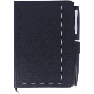 Notebook A6 con penna. Copertura rigida in PU. 144 pagine a righe (72 fogli). Cinturino di...