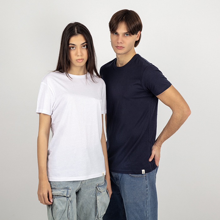 t-shirt adulto cotone biologico pettinato girocollo a costina rinforzata ribattitura doppio ago...
