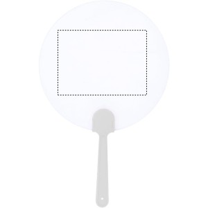 Ventaglio rotondo in plastica. Superficie semi-rigida trasparente. Ampio spazio per logo aziendale.