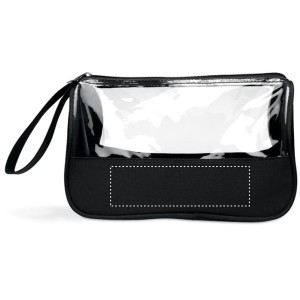 Porta cosmetici in microfibra con banda in PVC trasparente. 6 Phthalate free.