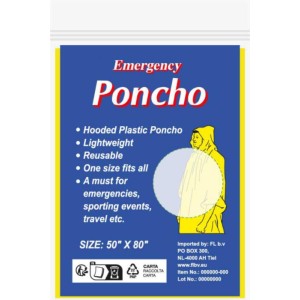 Poncho d'emergenza in custodia a sfera con moschettone, in ABS