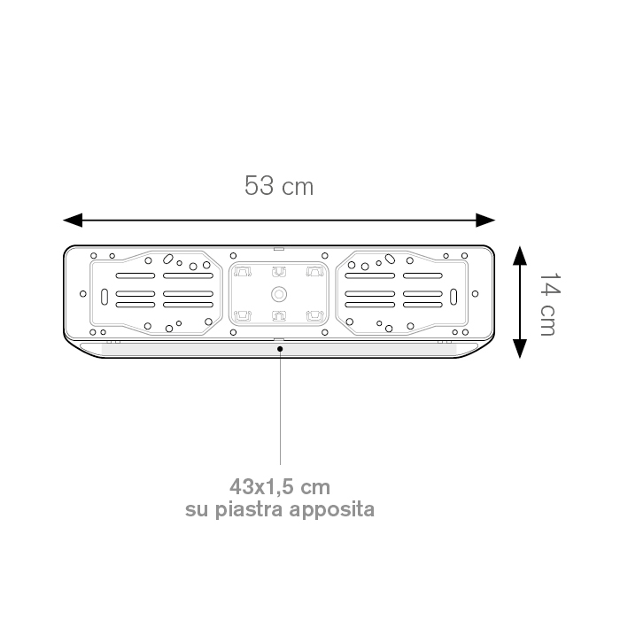Portatarga posteriore auto in polipropilene con listello. 52,5 x 13,5 cm (circa) Montaggio...