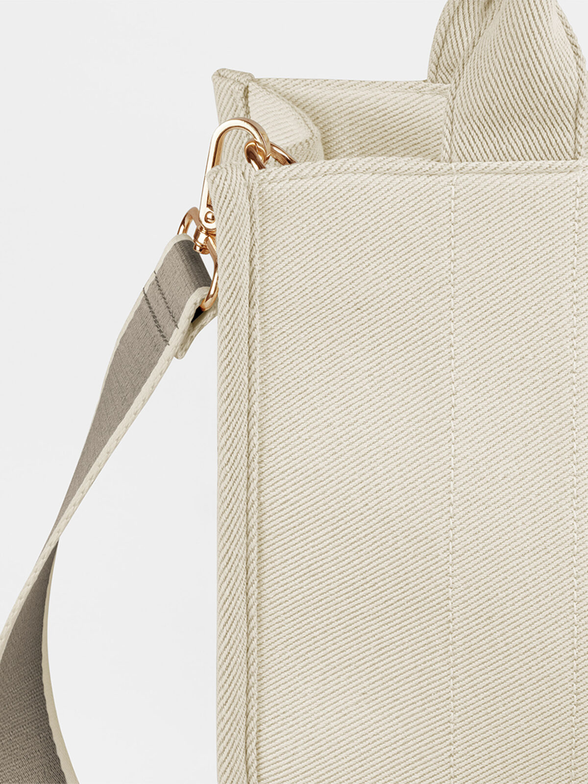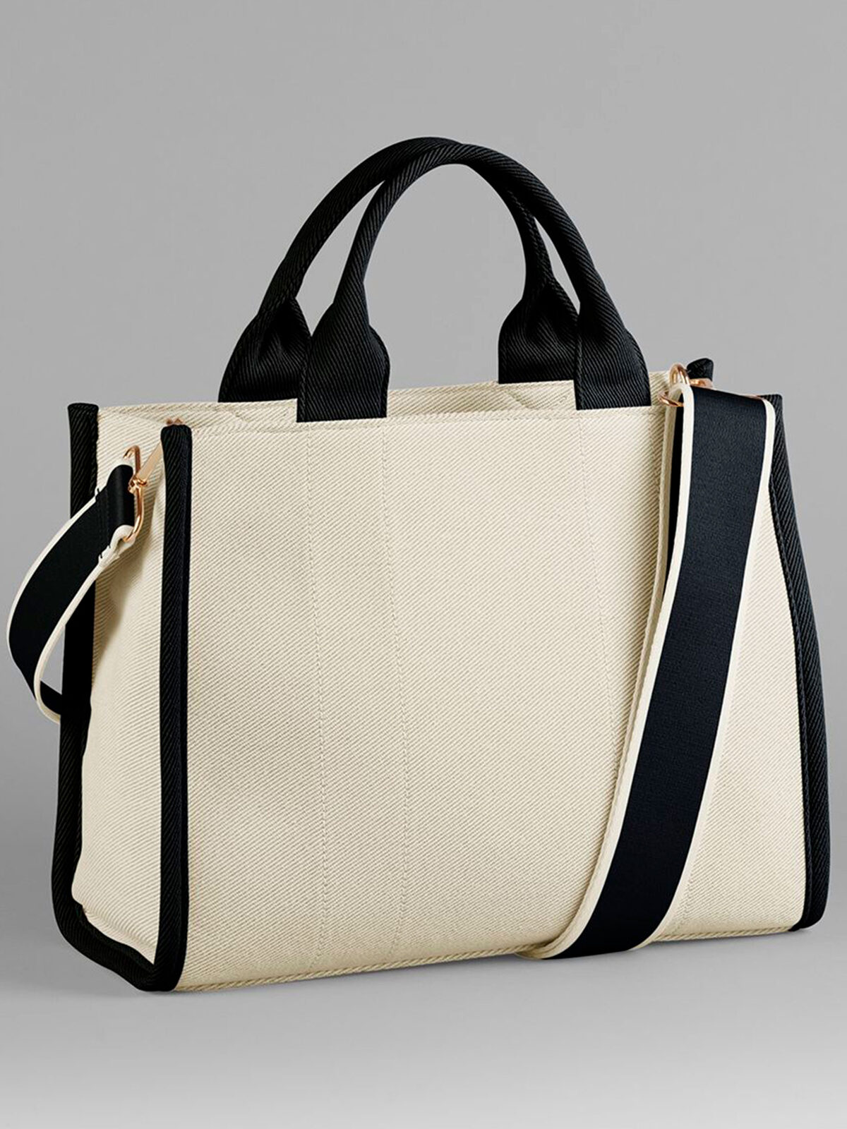 66% poliestere, 23% cotone, 11% altre fibre. Borsa tote in tessuto twill, con manico, scomparto...