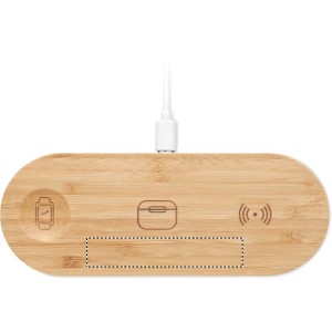 Stazione di ricarica 3 in 1 con custodia in bambù. Include un caricatore wireless da 15W, un...