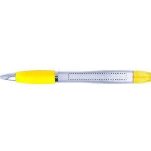 2in1 penna a sfera ed evidenziatore. Impugnatura in gomma. Refill blu.