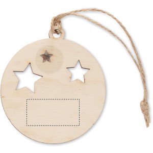 Decorazione natalizia in legno a forma di palla , completa di cordoncino in juta per appenderla...