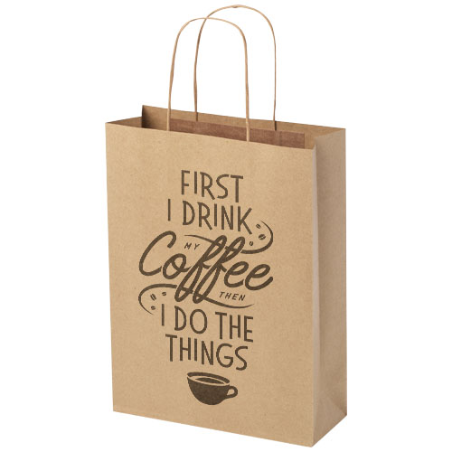 Shopper media in carta kraft da 120 g/m² (24 x 9 x 32 cm) con manici intrecciati in carta ,...