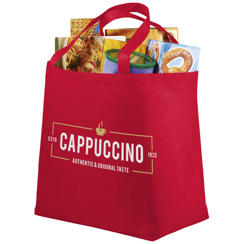 La tote bag Maryville è una valida alternativa alle borse di plastica monouso. Realizzata in tessuto non tessuto (TNT), è solida e versatile, ideale per diversi utilizzi quotidiani. Con manici da 18 cm, può essere comodamente portata a mano o sulla spalla. L’ampio scomparto principale permette di riporre facilmente più oggetti, rendendola perfetta per lo shopping, una giornata in spiaggia o al parco. La sua capacità massima è di 10 kg. Ampio spazio disponibile per la personalizzazione con loghi o testi, rendendola anche un eccellente gadget promozionale.