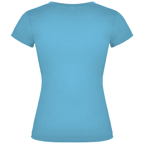 T-shirt da donna a maniche corte e scollo a V con finiture a costine 1x1. Aderente con cuciture...