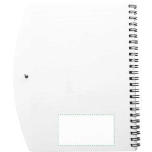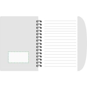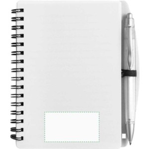 Taccuino in PP, formato +/-A6, 65 pagine a righe, dotato di penna a sfera in ABS con clip in...